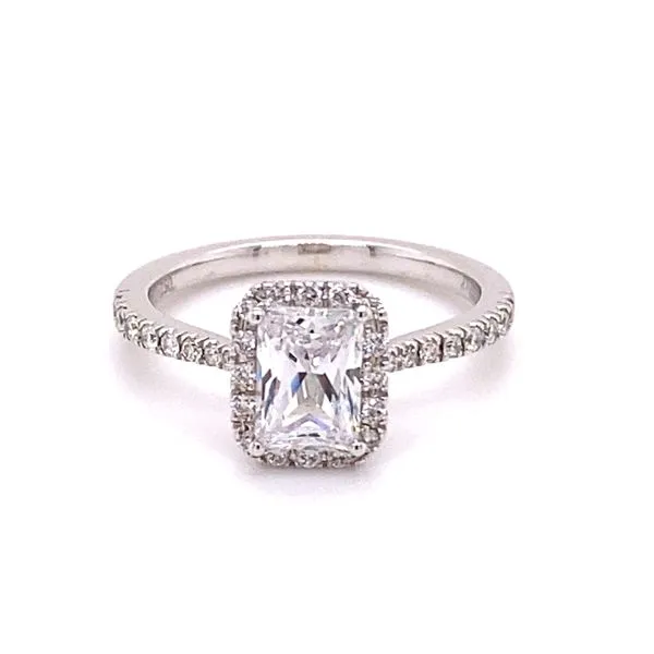 (813) 909-239318KW Emerald Shaped Halo Semi Mount Engagement Ring