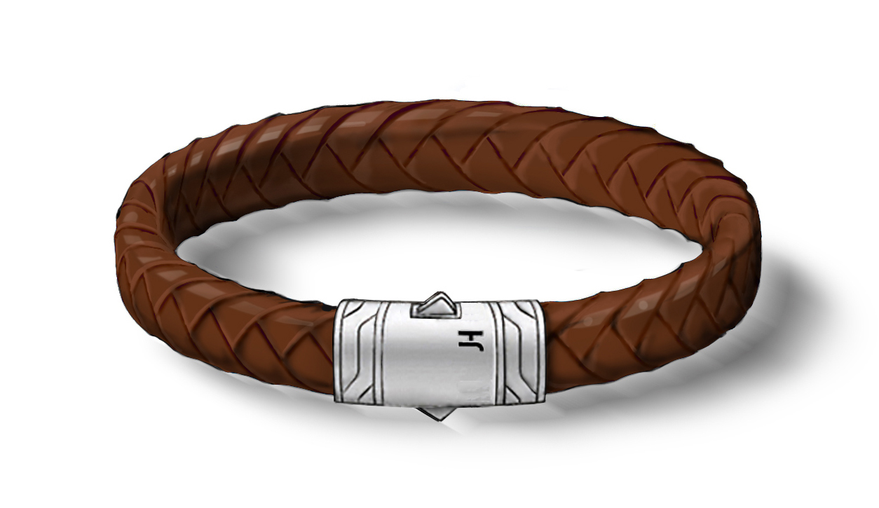 (813) 909-2393SS Brown Leather Braided Bracelet by John Hardy